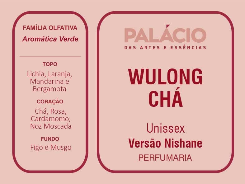 O Perfume Wulong Chá é uma fragrância elegante e sofisticada inspirada pelo chá oolong, a fragrância captura a essência desse chá especial e a transforma em uma experiência olfativa encantadora que é ao mesmo tempo fresca e reconfortante.